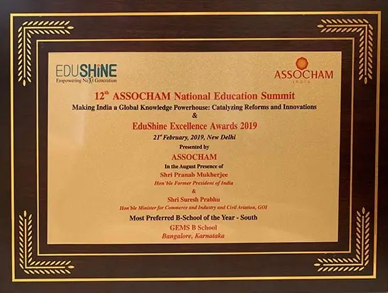 #1 B School in South India for placement 2019 by ASSOCHAM